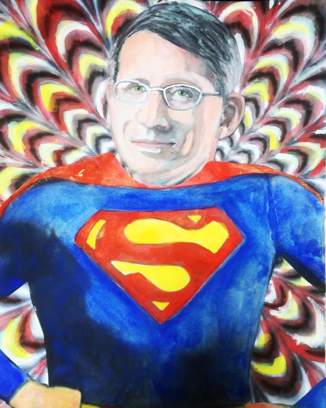 Okay, this post takes the cake! Loved every bit of your post Jama, beginning with the powerful poem, through all the serious and campy art images, bobblehead goodness, and backstory on the man of the hour, but… drum roll please… the creme de la creme is your Dr. Fauci Sandman video, Wow, Fantabulous!!! Have a wonderful summer despite the chaos in our small universe, I’ll miss you–see you when you return, thanks, xo