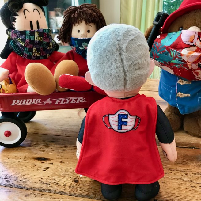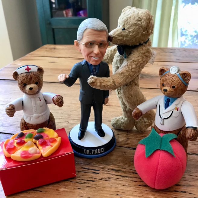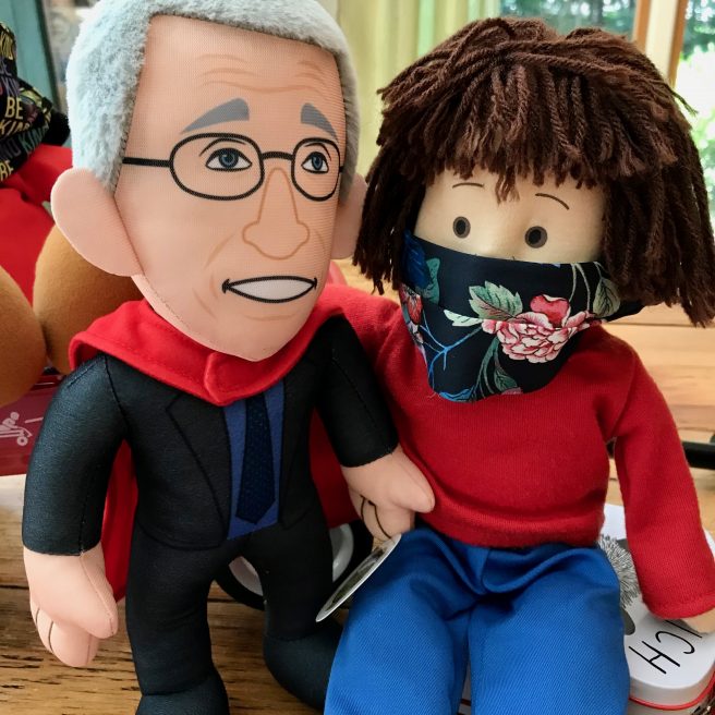 Imagine our surprise at seeing Dr. Fauci Plush at the door! Oh my, oh my. Since we truly believe one can never have too many Dr. Fauci’s in the house, we invited him in and practically hugged him to death.