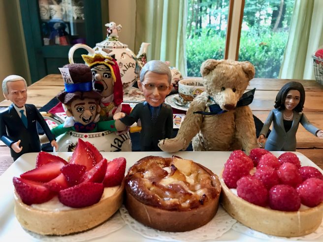 I don’t know how you did it, Jama, but you made me smile from beginning to end of this post! Ungar’s poem is all of us right now. I’ve SO missed you this summer. I’m glad to hear you are staying on this side of healthy and sane – your survival tips are as brilliant as they are doable: “For me it’s been all about following a simple daily routine, staying positive and expressing gratitude.” And your guests, Joe, Kamala, and Tony – swoony-swoon-swoon! (I really want to feel the plush Fauci doll’s hair! 🙂
