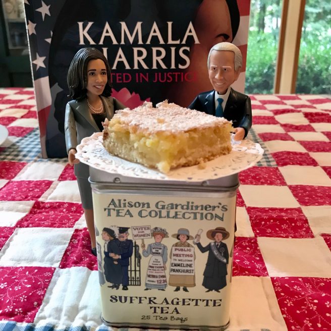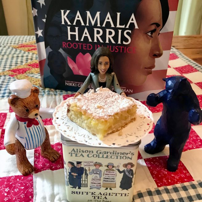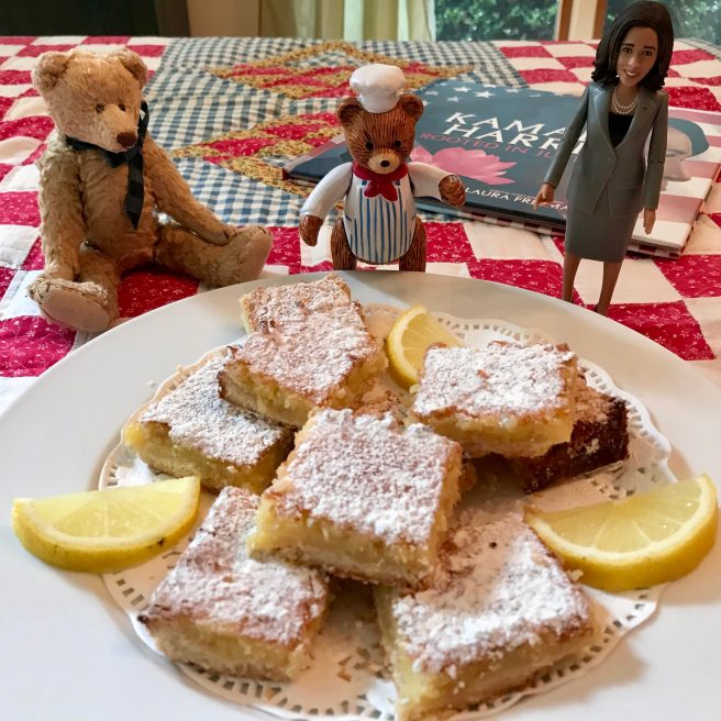 13. I love the expression “a waterfall of laughter.” That’s one of the things I noticed about Kamala Harris the night she accepted the nomination for vice president–she seemed so happy and friendly and “real.” Like someone you’d like to talk to–and maybe eat lemon bars with! This book looks wonderful…thanks for the review and the recipe!