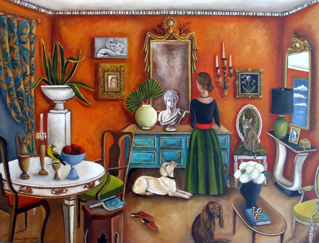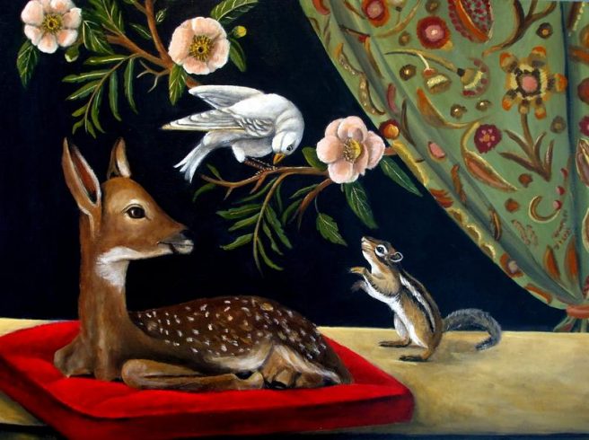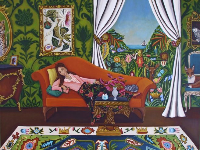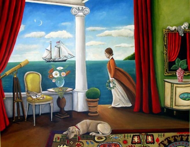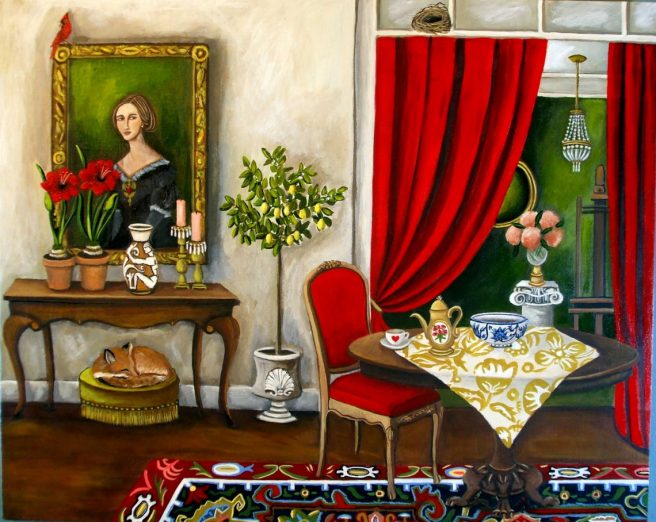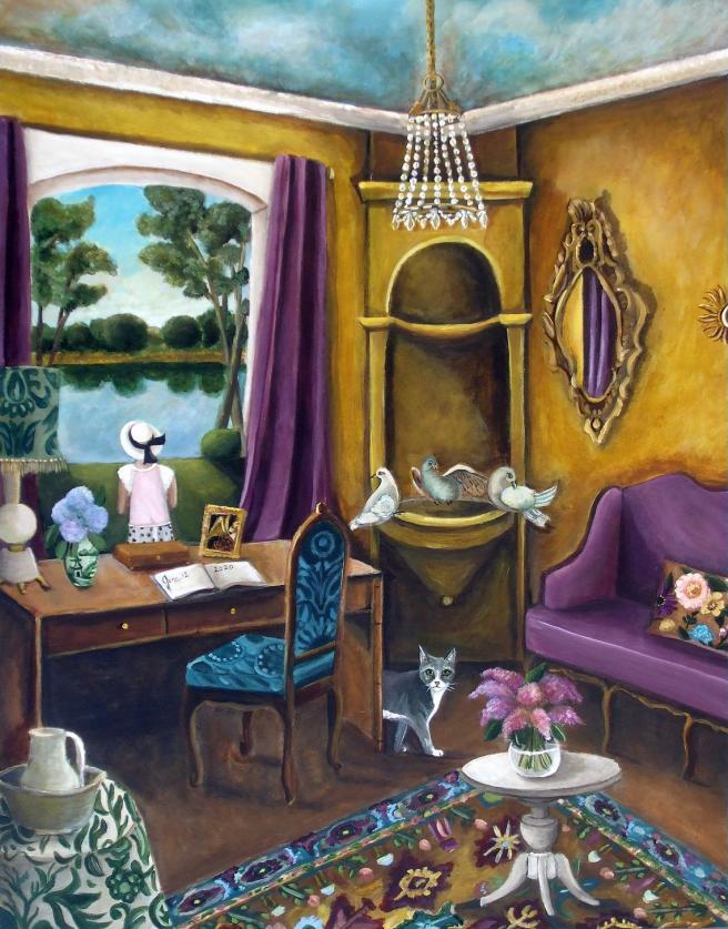 Yes, I adore the whimsey of animals in one’s living room, and the window views of the ocean or lakes. Every painting seems to tell a story, too, Jama. Thanks for sharing such beauty today, needed!