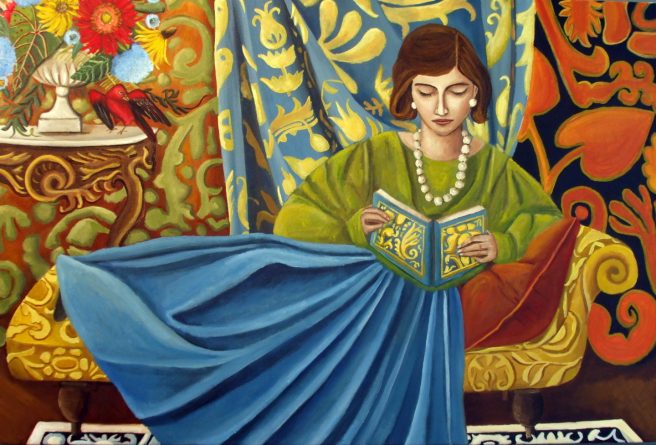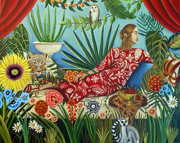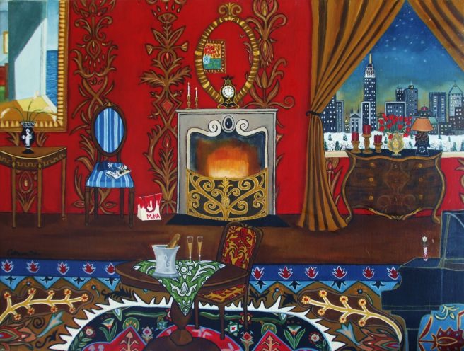 Catherine Nolin’s paintings take my breath away. Her gorgeous room portraits, still lifes, and botanical designs are defined by rich, vibrant colors, intricate patterns and luscious textures, each a sensual feast for the eyes steeped in antiquity.