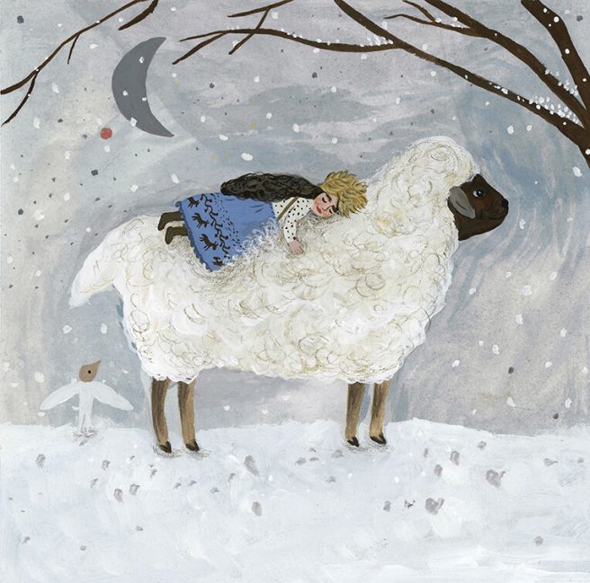 Once outdoors — whether exploring the woods or riding on the backs of moths or birds — we’re invited to dwell in magic and wonder. Humans and animals happily co-exist in idyllic locales — riverbanks, hillsides, streams and meadows.
