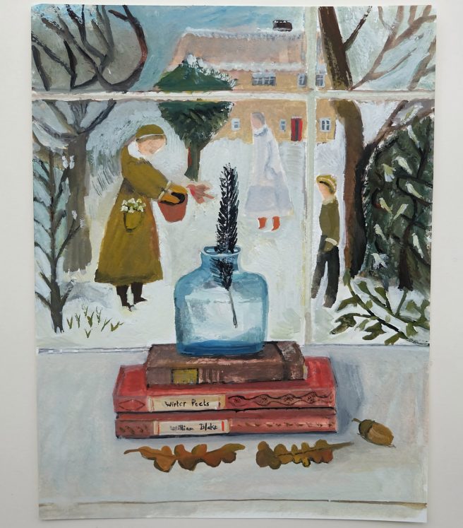 Since earning an MA in Creative Writing (specializing in poetry) from Bath Spa University, most of her energies thus far have been devoted to art rather than writing. Still, her background in literature is evident in the narrative component of her pieces, and how she establishes a kind of regional, historic context for them.