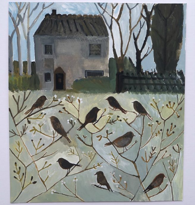 Cathy Cullis’s art invites you to enter a world of serenity, quiet beauty, and sometimes, melancholy. Stone cottages and charming homes, cozy interiors, peaceful gardens, solitary figures, and uncluttered still life compositions are rendered in subdued colors or monochrome, speaking of another time, far removed from the busyness of modern life.