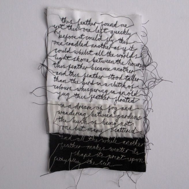 Every part is delightful, Jama. I am in love with those embroidered pieces, did not know one could do such work with a machine. Her work of the out of doors also is lovely. And, toward the end, love ” a poem can hint at the different layers of life.” Thank you & Happy, happy Tuesday!