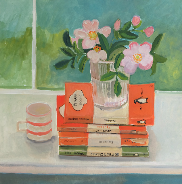 I love Cathy’s work, especially the paintings with books and flowers. Happy Tuesday, Jama!