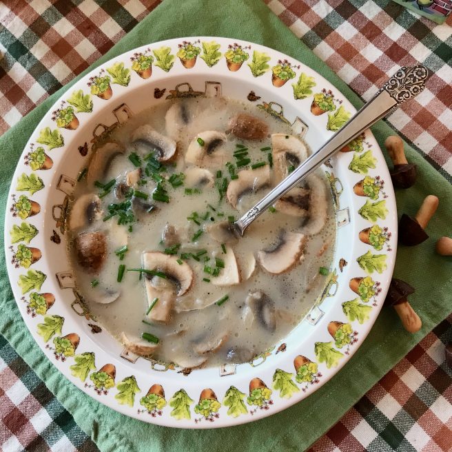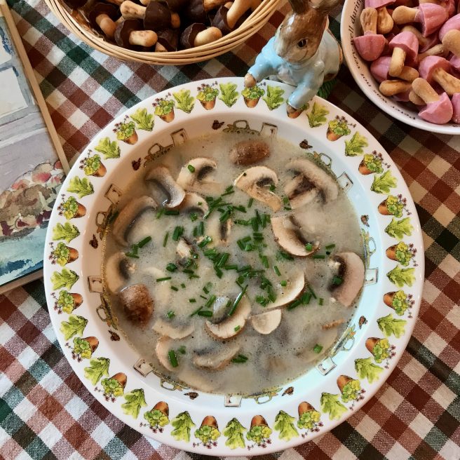 1. Thanks for stopping by to read, Suzanne. Glad you enjoyed the post. My “soup bowl” is actually part of an Emma Bridgewater BP nursery set. I decided to use it because with my other actual soup bowls, the mushrooms kept sinking to the bottom — so I needed something shallower. 😀