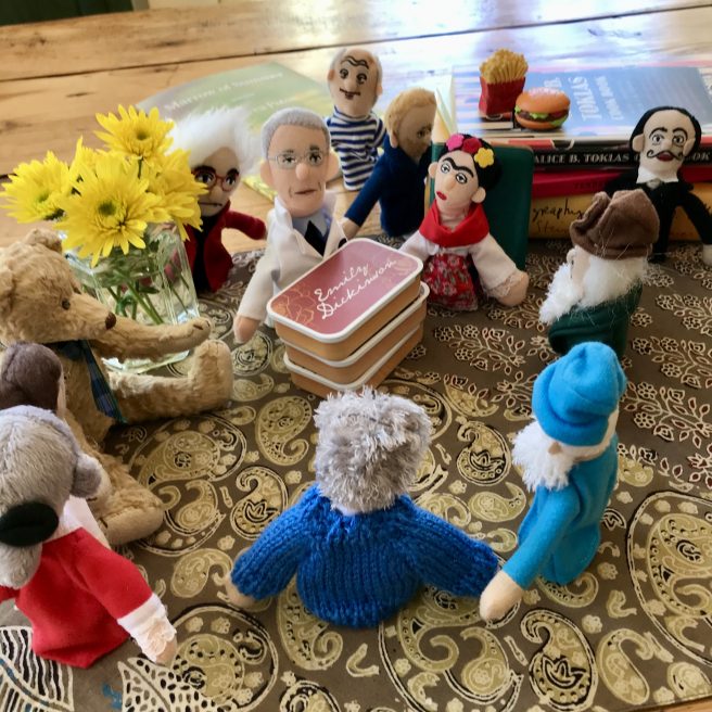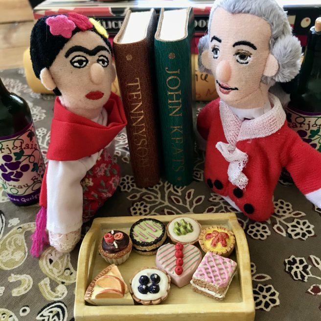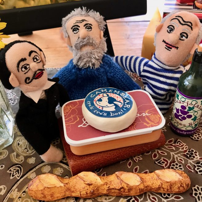 Monsieur Cornelius was so impressed by Andrea’s book that he wanted to host his own Saturday night salon. After Frida Kahlo and Claude Monet read aloud from Marrow of Summer, the guests mingled freely with bread, wine, cheese, sweets, lots of laughter and splendid repartee. An evening to remember!