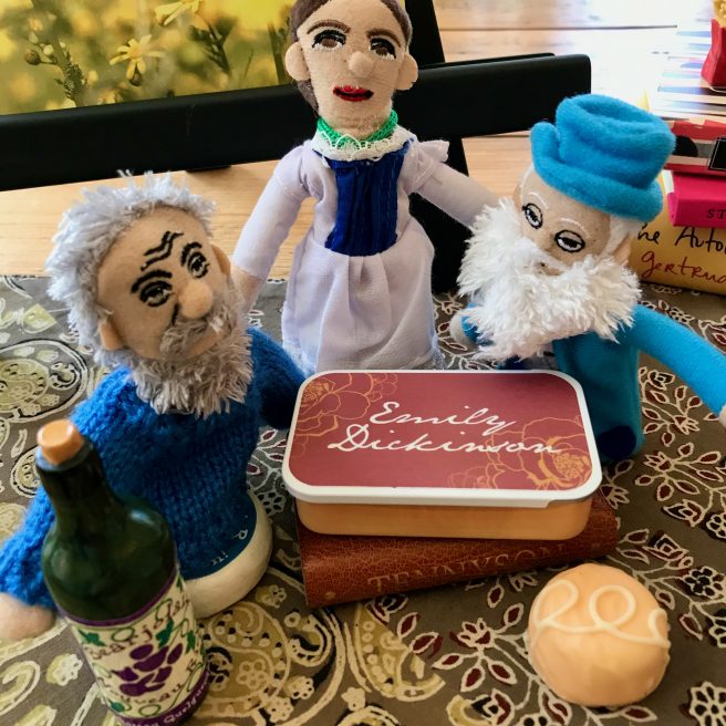 Emily D. (who came out of her shell), impresses Monet and Warhol with her tea pouring skills. Emily to Andy: “Got soup?”