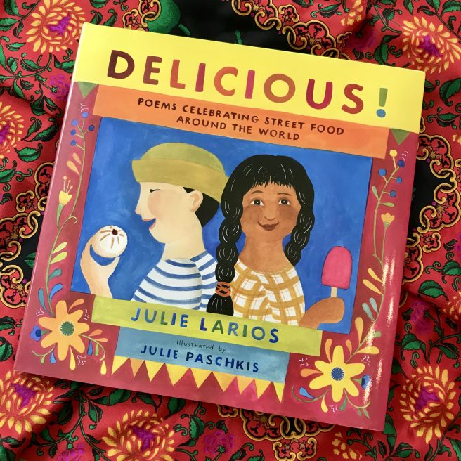 In Delicious!: Poems Celebrating Street Food Around the World (Beach Lane Books, 2021), my two favorite Julies — Julie Larios and Julie Paschkis — tempt readers with sweet and savory treats sure to rouse appetites and stir wanderlust.