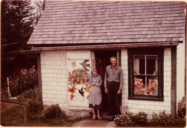 Although Everett was an irascible character, he encouraged Maud to paint and scrounged for supplies (including leftover house and boat paint). When Maud’s worsening arthritis made it difficult to do physical work, Everett took over housekeeping chores while Maud covered almost every available surface with flowers, birds, butterflies, and animals.