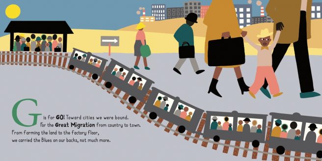 The history of Blacks in America has been a history of protests, marches, sit-ins, and boycotts. For the letter “M,” Cortez’s deftly crafted verse and Semmer’s spirited illustration reference the civil rights and Black Lives Matter movements, climate change, and gun violence, giving young readers an instructive glimpse of historic milestones as well as current, ongoing challenges.
