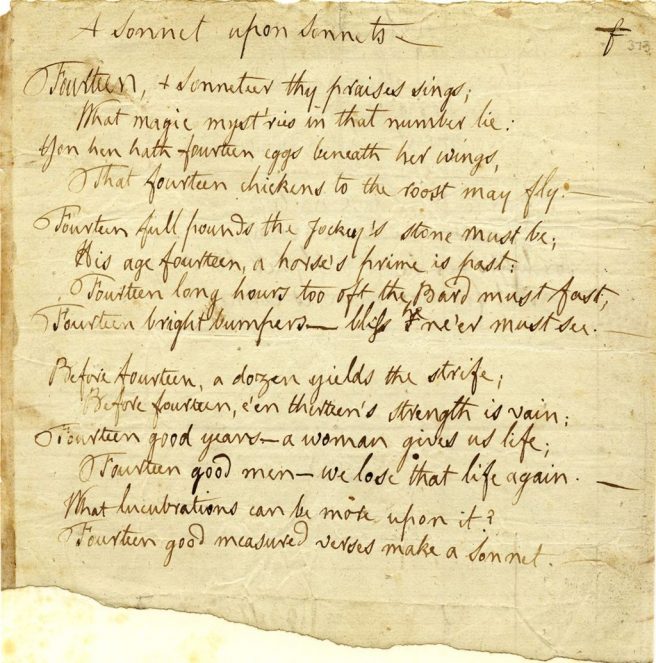 We leave you with “A Sonnet Upon Sonnets” by Scotland’s National Bard, Robert Burns. Written in 1788, this was his first attempt at the form, and we love how he ruminates on the number 14. Wonder what guid auld Rabbie would have thought of “Outlander”?