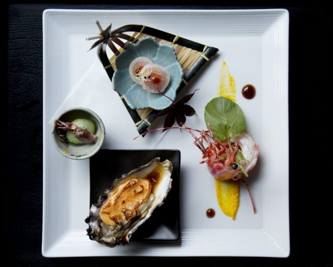 What is kaiseki? Considered the pinnacle of Japanese haute cuisine, it’s a traditional culinary art form consisting of an exquisitely presented multicourse meal prepared with locally sourced, seasonal ingredients. Courses follow a specific sequence balancing the taste, texture, appearance, and colors of food, thereby creating a singular story embodying the chef’s essence.