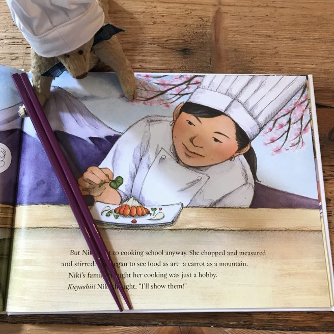 Naturally, after reading this story, everyone in the Alphabet Soup kitchen was ravenous. The resident chefs, who are now big Niki Nakayama fans, were happy to see that a recipe was included in the back of the book for them to try.