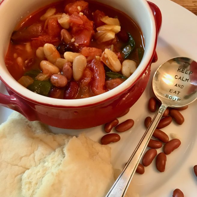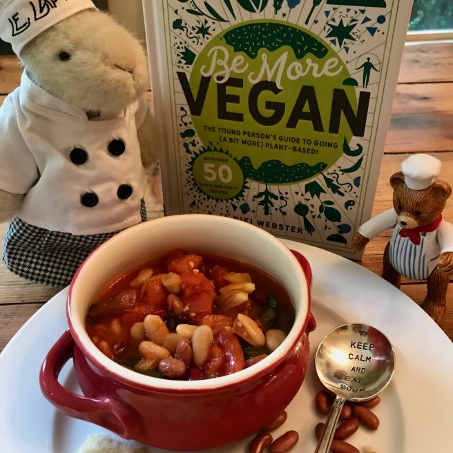 The resident bear chefs were happy to see two soup recipes in the Lunch section of Niki’s book — Creamy Sweet Potato and Speedy Smoky Tomato and Bean. Since they liked the idea of making a speedy soup that didn’t require blending/puréeing, they went with the tomato and bean.