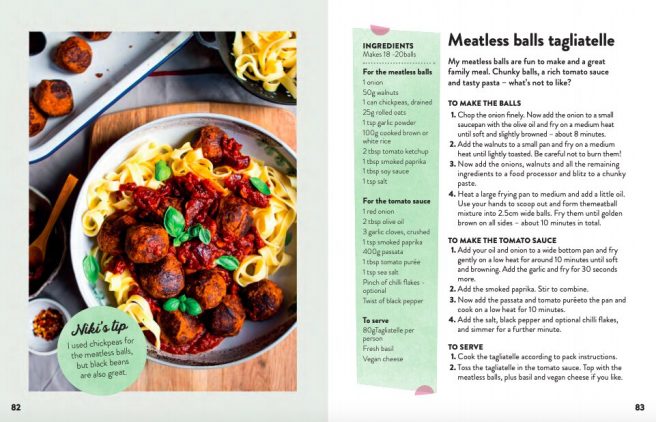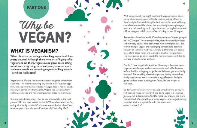 The book opens with Webster introducing herself and explaining why she’s a vegan. As a child, she didn’t like meat and refused to eat it. She just felt eating animals was wrong. After developing a milk intolerance, her “fussy eater” diet became even more restrictive, so in her teens she began cooking for herself, experimenting with and discovering foods she liked to eat.