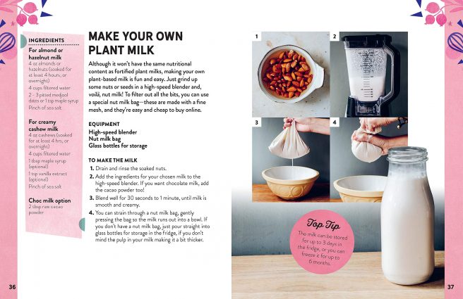 With a list of pantry essentials (lentils, seeds, nuts, tahini, beans, tomatoes, olive oil, vegetable stock, Indian and Middle Eastern spices, nutritional yeast, fresh herbs, frozen veggies), along with directions for making your own plant milk and nut cheese, you’re good to go.