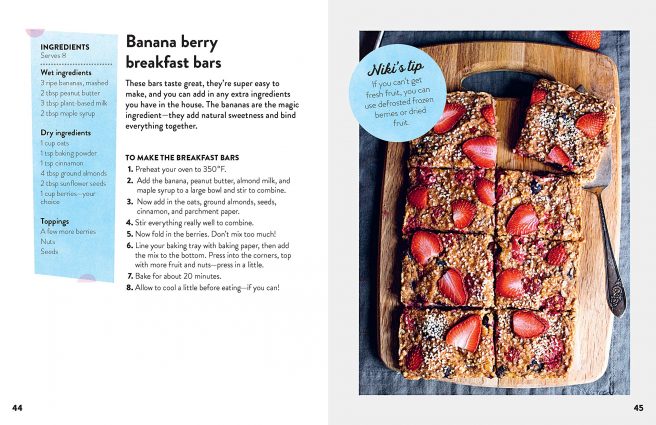 The 50+ recipes are divided into five sections: Breakfasts, Lunches, Mains, Snacks & Extras, and Desserts. They’re all simple to make with common pantry ingredients, and you don’t need any special equipment aside from a blender or food processor.