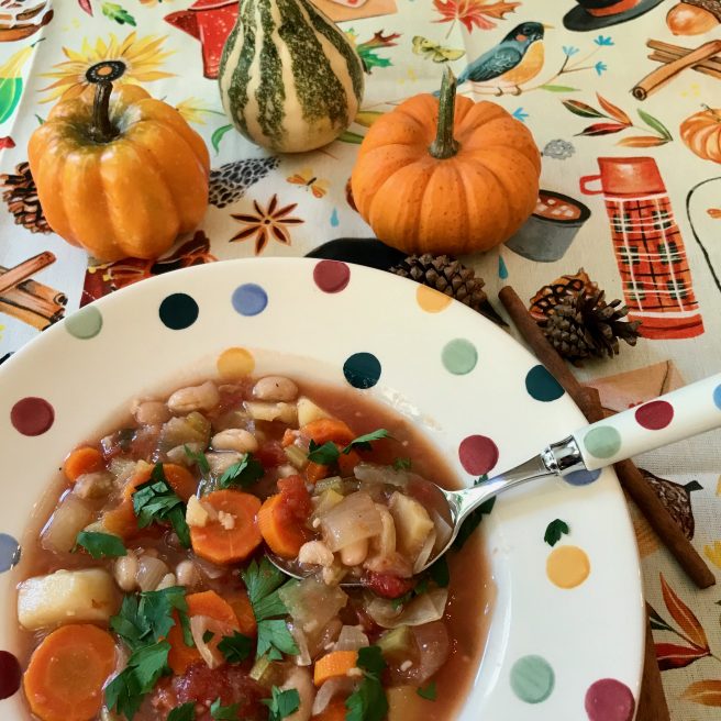 Ah… delicious 😋 soup Jama, thanks for filling me up this morning with a hearty poem, satisfying soup, lovely mages, and a recipe too! Love your pok-a-dot setting, bon aperitif!