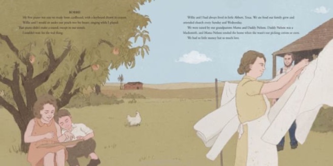 Not long after, Daddy Nelson bought Bobbie a secondhand piano from the general store, and he ordered a guitar for Willie from the Sears Catalog. Mama Nelson taught Bobbie while Daddy Nelson taught Willie.