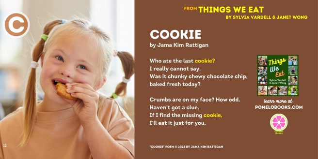 JAMA: You really know how to make a book SHINE. In this case, it might be people SALIVATING over that last missing cookie! Thank you for gracing the pages of THINGS WE EAT with your clever and sassy poem, and THANK YOU for spreading the word in such a delectable way!!