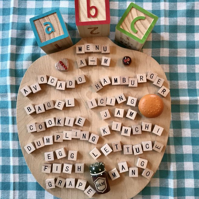 I miss the mangoes we used to eat in Hawaii, remember my mother peeling them and the juice running all over her fingers. Dumplings are time consuming to make from scratch; luckily there are frozen ones available to satisfy our cravings. My new alphabet letters are smaller than scrabble tiles (which I don’t have). 🙂