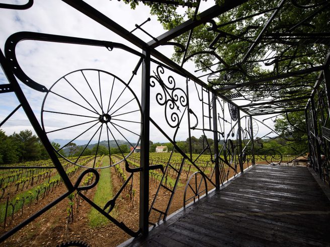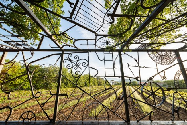 This sculpture, of a railway freight carriage, is his largest so far and was made with seven tons of iron. It’s installed on train tracks in Château La Coste. It features motifs of ladders, wheels and tools.