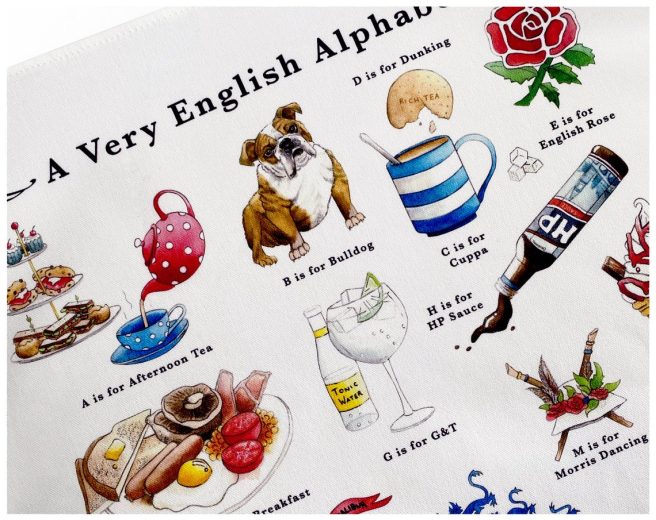 Those tea towels are the best – I’m cracking up at the “H is for HP Sauce” – though what I really need the Scottish tea towel. Who else on earth will have a tea towel with The Big Yin on it?? ☺