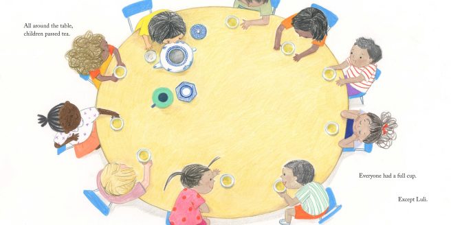 When five-year-old Luli joins her new English as a Second Language class, the playroom is quiet. Luli can’t speak English, neither can anyone else. That’s when she has a brilliant idea to host a tea party and bring them all together.