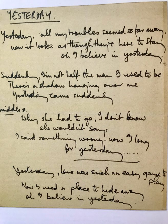 In interviews, Paul often cites “Yesterday” as special because the melody came to him in a dream while he was living at Jane Asher’s family home in 57 Wimpole Street.