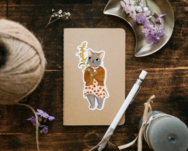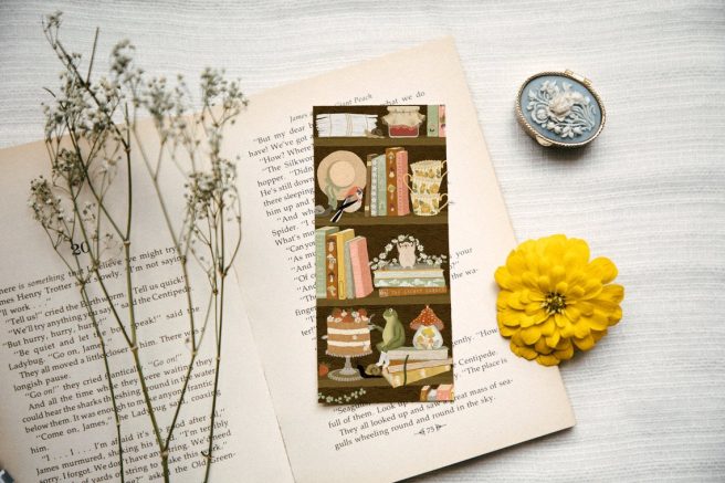 You can find originals, prints, stickers, greeting cards, recipe cards, enamel pins, bookmarks and clothing at her Etsy Shop.