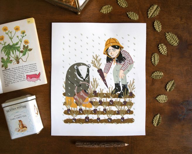 Her favorite artists include Beatrix Potter, Gyo Gujikawa, Amélie Fléchais, Tove Jansson, and Gary Bunt (whom we featured here).