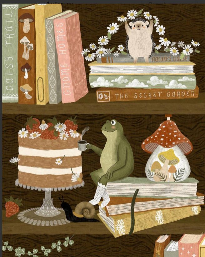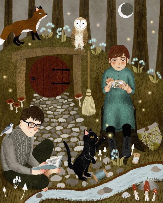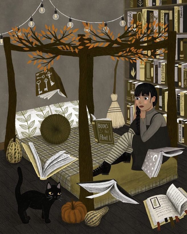 She’s largely inspired by folklore, mythology, nature, children’s literature, and the cozy comforts of home. She’s an avid reader of fantasy novels and often gets ideas from listening to movie soundtracks.