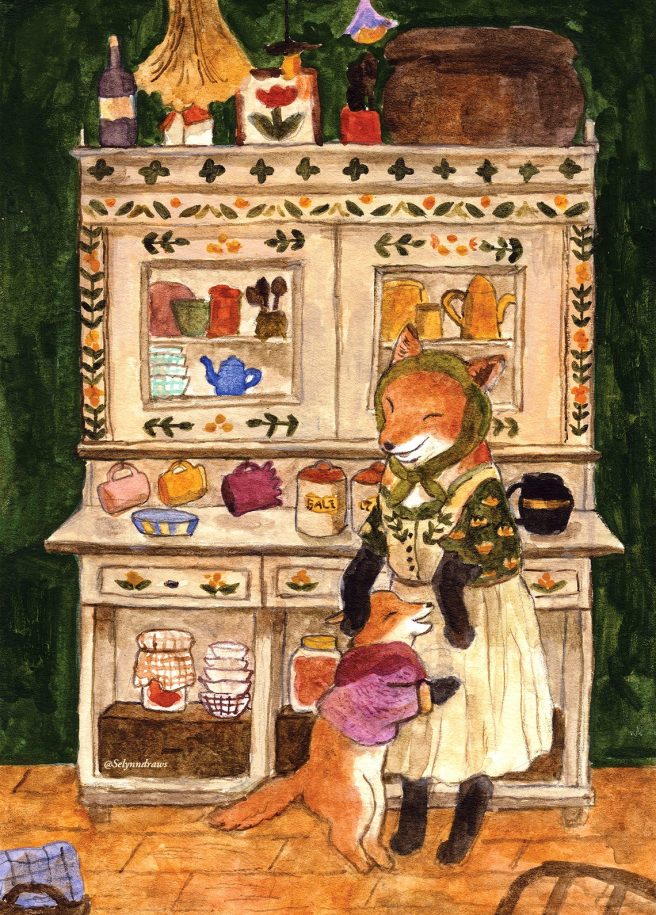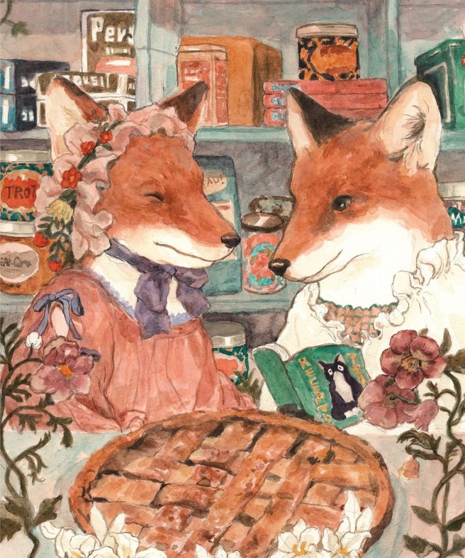 Her art caught my eye because of my love of foxes and bears. I like the idea of different animal species peacefully co-existing. 🙂