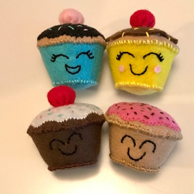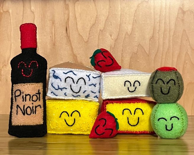 Not into pies? Kelsey will fix you up with cookies, wine and cheese, donuts, PopTarts, pizza, or a variety of fruits. Yes, they’re all smiling at you. 🙂 Whet your appetite at Kelsey’s Etsy Shop, KMChefCrafts. Fun for play or display!