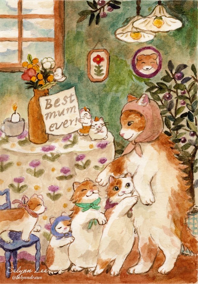She works mainly in watercolor with other mediums such as gouache, pencils and Procreate.