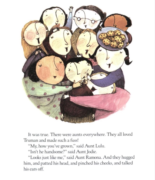 Truman’s sign (“Free to Good Homes”) made me laugh out loud. What a delightful book, Jama! I don’t have any aunts because my parents were both only children, so I never knew what it felt like to have an aunt or uncle! Now I’m aunt-to-many through marriage (my husband is from a huge family), and my kids have aunts and uncles to spare. 😀 And I’m an aunt to my brother’s little girl, but my sister wasn’t able to have children — she, however, is a fantastic aunt to my girls! ❤️❤️
