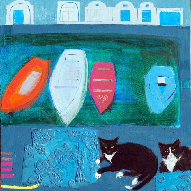 I love tuxedo cats — lucky you! The UK seems to bloom with so many talented artists. It’s fun to discover new ones and share them here.