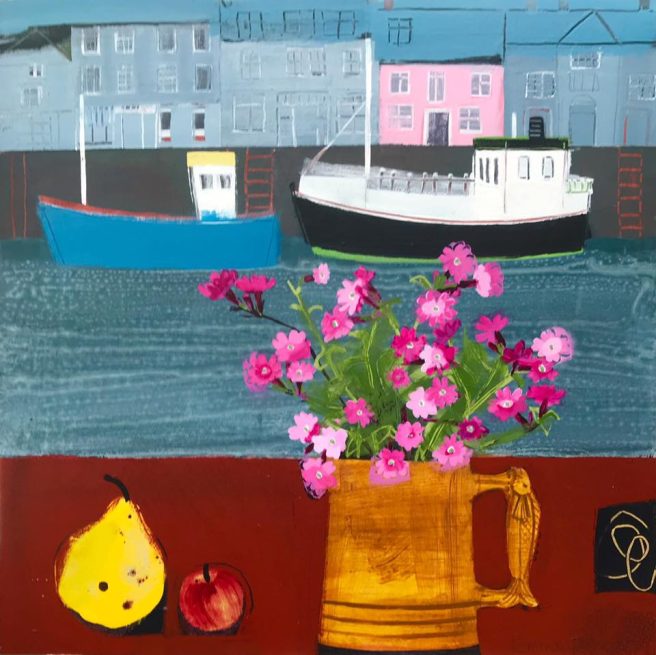 What excites me about making pictures is trying to capture the essence of a place, a feeling, a thing. I am attracted to vivid colours and the decorative qualities in everyday objects. I enjoy rearranging my ingredients, for instance moving all the red boats on the beach next to the pink tractor for a stronger effect. Birds, shells, flowers and fish might be placed against true landmarks as focal points. My pictures are therefore more atmospheric than literal. My aim is to end up with my gathered ingredients – glimpses of journeys, patterns from familiar settings and objects collected along the way – converging to create an image that communicates the richness of the original source of inspiration.