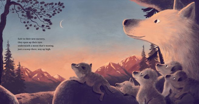 This lyrical, gorgeously illustrated picture book in verse follows a litter of baby wolf pups in the wild through their first full lunar cycle.