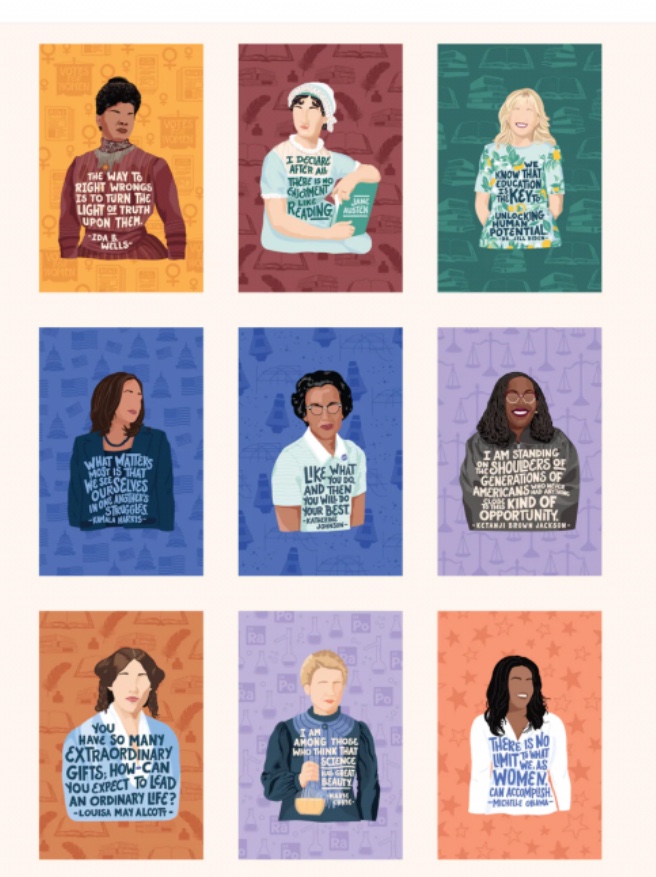 They are sold in sets of 2 or 4, and there are eleven different iconic women to choose from: