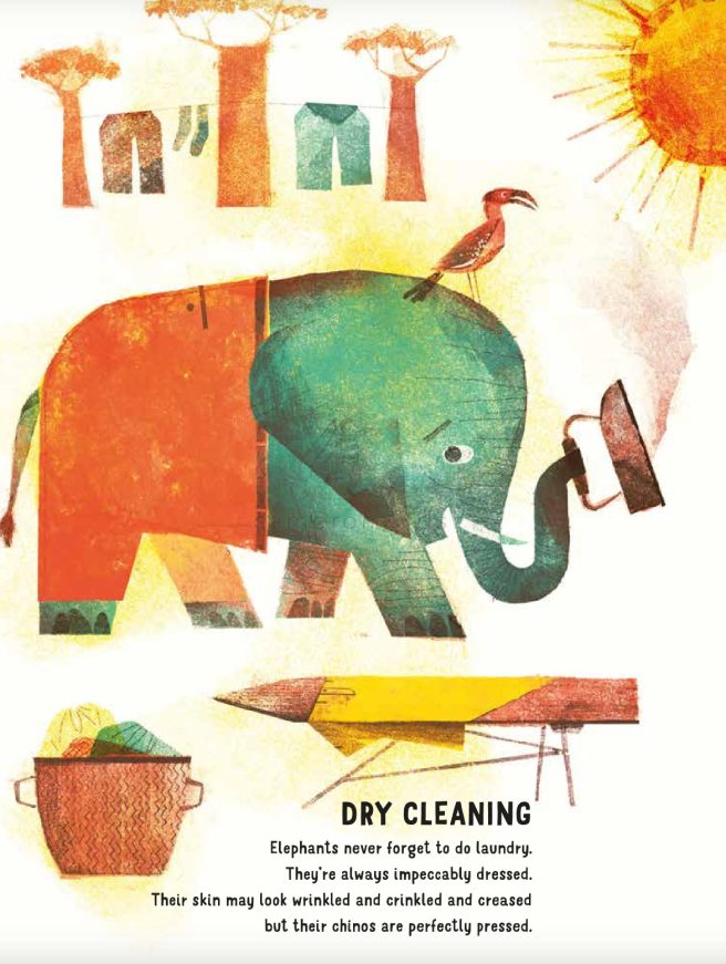 DRY CLEANING Elephants never forget to do laundry. They're always impeccably dressed. Their skin may look wrinkled and crinkled and creased but their chinos are perfectly pressed.