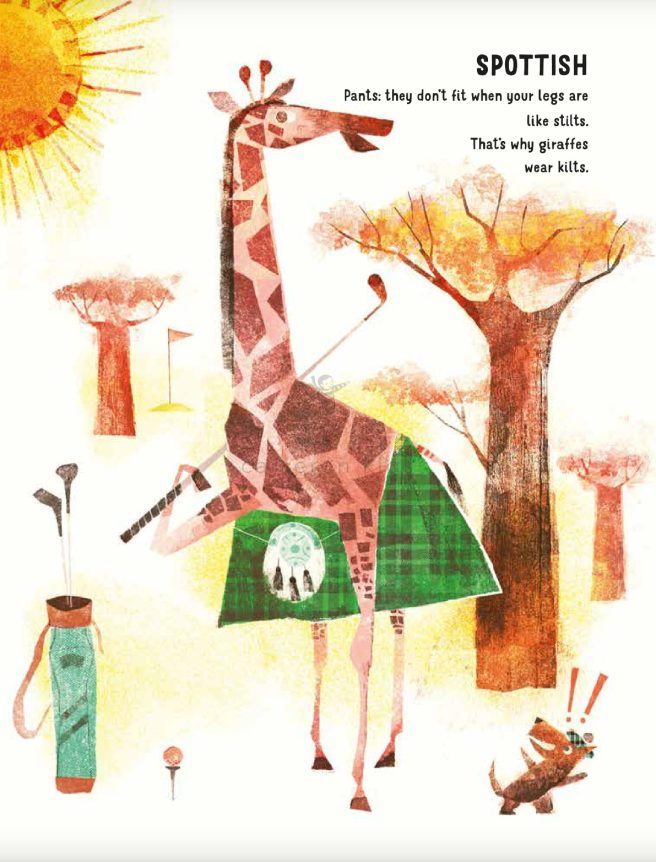 Having visited Scotland last year, my favorite is “giraffes wear kilts”! Have a wonder weekend. We are sweltering here in NYC from an unexpected 2 day 90’s heatwave!