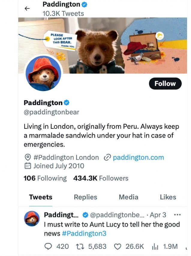 There is frequent mention of cake, cocoa, and other snacks (my kind of bear). He garnered over 1 million likes for his tweet during the Queen’s Platinum Jubilee last year: