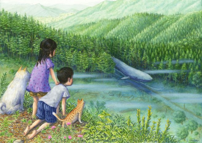 Though Okayama’s figures are realistic, his scenarios are dreamlike, inviting the viewer into a place of fantasy and imagination. I like his gentle approach, reverence for nature, and respect for children, as he captures their many moods while at rest or at play.