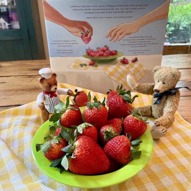 As we learn in Spring is for Strawberries by Katherine Pryor and Polina Gortman (Schiffer Kids, 2023), the farmers market is much more than a place to buy and sell local seasonal produce. Unlike shopping in a big grocery store, farmers markets offer us a chance to get up close and personal with those who actually grow our food. As we return to our favorite vendors week after week (or year after year), sometimes casual pleasantries can blossom into meaningful friendships.