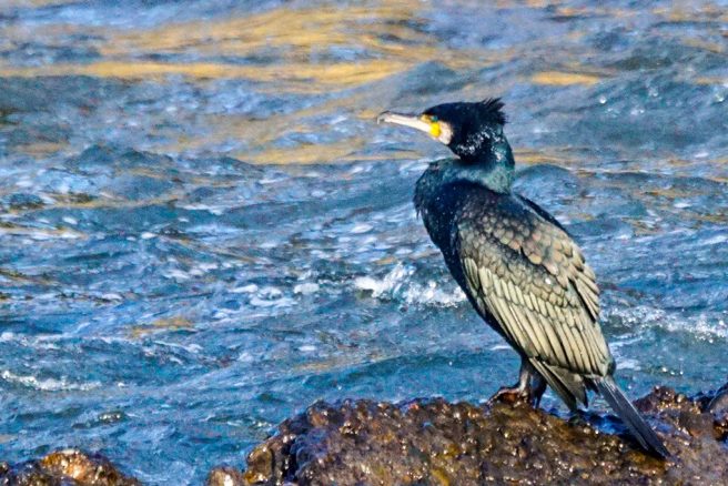 Ahh…how I would love to revel in a blue cormorant’s eye jewelry, dazzling against the ripples of blue water. I must settle for my Stellar’s Jays.