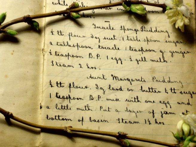 Dot (b. 1894) worked as a professional Edwardian cook in Nottingham before marrying a shepherd and living in various cottages around Lincolnshire. She recorded her family’s favorite recipes in a black notebook which Brackenbury later inherited along with Dot’s wooden desk.